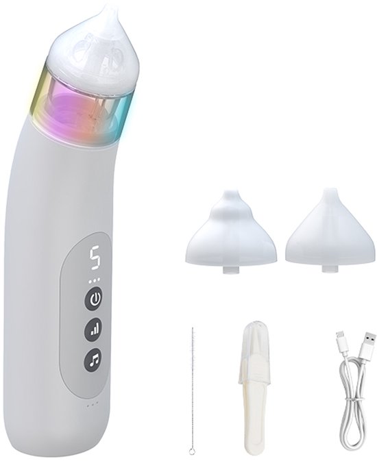 Voor baby’s raden we deze elektrische neusreiniger van Vulpes Goods aan. De batterij van dit compacte model gaat 120 minuten mee en het heeft een sterke zuigkracht. De kinderliedjes hebben een kalmerende werking, waardoor baby’s dit niet eng vinden.